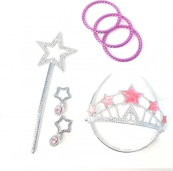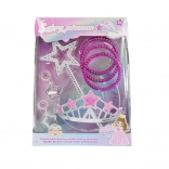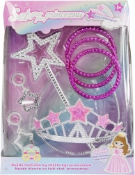 Ta princeskin komplet modnih dodatkov je popolna izbira za vse male ljubiteljice pravljic. S kombinacijo krone, uhanov in zapestnic se vsaka igra zlahka spremeni v kraljevsko pustolovščino.
