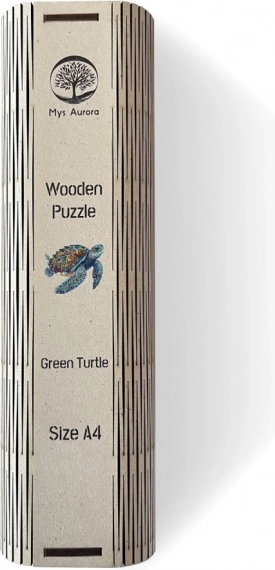 Lesene sestavljanke Green Turtle A4 prinašajo nepozabno izkušnjo sestavljanja zahvaljujoč nenavadnim, skoraj umetniškim oblikam posameznih koščkov. Vsak kos je edinstven, nekateri koščki so izrezani v podobe različnih živali in rastlin, kar naredi sestavljanje bolj zabavno in vizualno privlačno. Po končanem sestavljanju dobite kompakten motiv v velikosti A4, ki je odlična dekoracija za notranje prostore.