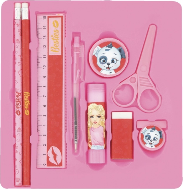 Šolski komplet Besties je idealen za vse šolarje. Vsebuje vse osnovne pripomočke, ki so nepogrešljivi med šolskimi urami.