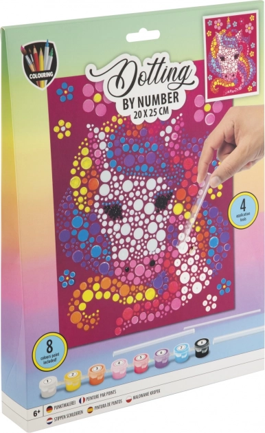 Spremenite proste trenutke v ustvarjalno doživetje. Platno z oštevilčenimi pikami vas vodi korak za korakom – vsaka številka ustreza določeni barvi. Rezultat je impresiven motiv samoroga, ki ga boste s ponosom razstavili.