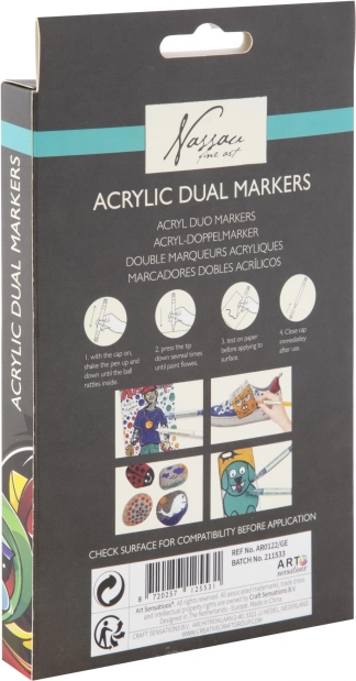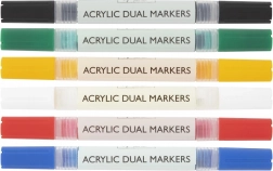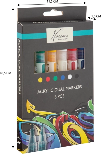 Ta praktičen komplet akrilnih dual markerjev prinaša žive, prekrivne odtenke in udobje dveh konic v vsakem markerju. Z njimi ustvarite napise, ilustracije, dekoracije in DIY projekte – od slikanja na papir in karton do okraševanja kamenčkov, lesa ali obutve.
