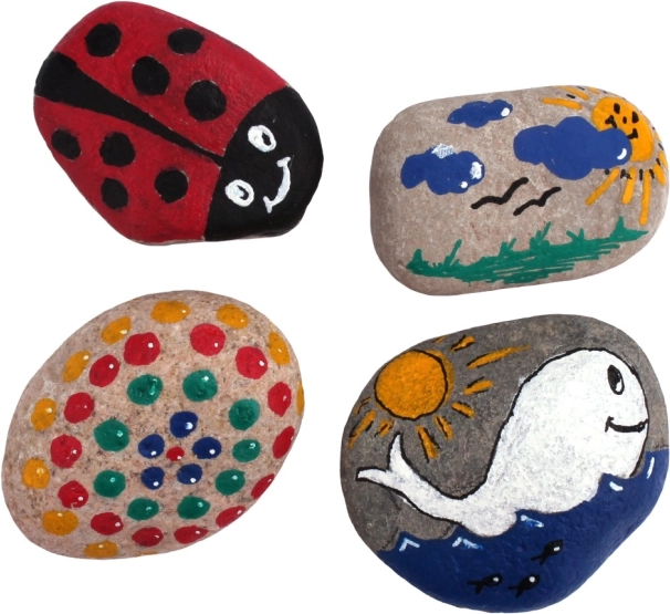 Kamenčki, papir, les ali dom dekor – akrilna barva prekriva in zasije tudi na temnejših podlagah. Pred nanosom površino očistite in izvedite preizkus.