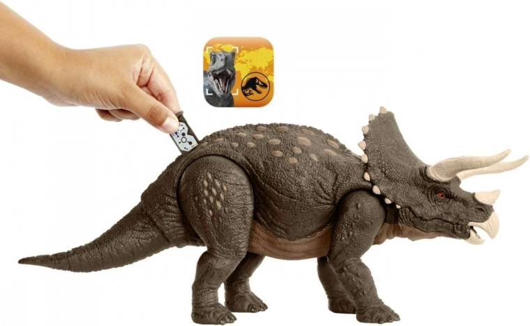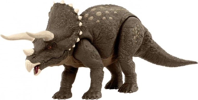 Velika figurica TRICERATOPSA iz linije Jurassic World je izdelana iz 60 % certificirane plastike ISCC (mass balance), meri približno 43 cm v dolžino in ponuja premične noge, rep, glavo in čeljusti. Z aplikacijo Jurassic World Facts oživi v obogateni resničnosti (AR) in otrokom od 4 let naprej prinese interaktivno zabavo. Okoljsko miselnost podpira tudi FSC reciklirana embalaža z rastlinskimi barvili.