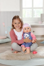 Punčka je oblečena v ljubek pajac z ovčko in rožnato kapico. Del opreme je tudi steklenička za igro hranjenja. Zaradi standardne velikosti lahko uporabljate tudi prava otroška oblačila, zato je preoblačenje in kombiniranje oprav tako preprosto.