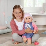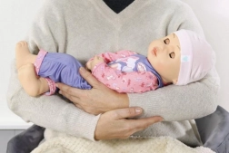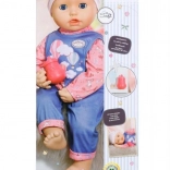 Priložena je steklenička za igro hranjenja. Oblačila je mogoče sleči in obleči, ustreza tudi pravo otroško oblačilo.