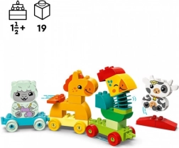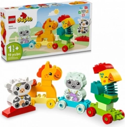 LEGO DUPLO živalski vlak bo navdušil vse male ljubitelje živali in vozil. Otroci sestavijo petelina, konja, ovčko in kravo, jih posadijo v barvno usklajene vagončke in se odpravijo na pustolovsko vožnjo. Zahvaljujoč velikim kockam se set zlahka sestavlja in spodbuja učenje skozi igro.