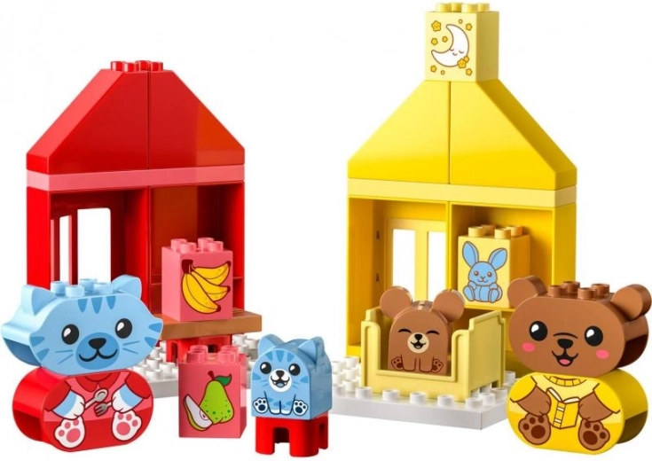 Barvno razdeljeni deli malim graditeljem pomagajo preprosto zgraditi in predelati dve preprosti hiški. Pri sestavljanju otroci urijo koordinacijo oko–roka, fino motoriko in razvijajo domišljijo. Kakovost LEGO zagotavlja dolgotrajno zabavo in varno igro.