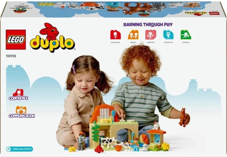 Odkrijte čar kmetije s setom LEGO DUPLO Nega živali na kmetiji – idealna igrača za otroke od 2 let. Vsebuje osem prikupnih živalskih figuric in barvite gradbene elemente, ki spodbujajo igro vlog, razvoj empatije in fine motorike. Hlev, kokošnjak, senik in številni realistični dodatki navdihujejo neskončne zgodbe in skupno družinsko zabavo.