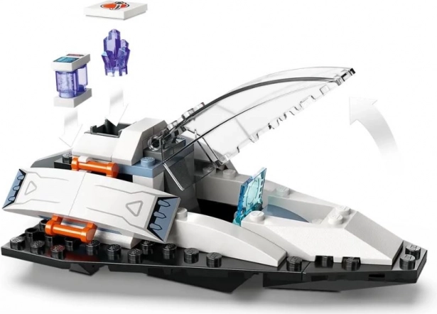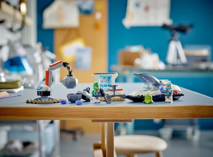 Dve minifiguri astronavtov in figurica nezemljana prinašajo veliko zgodb. Ne manjkajo kontrolna postaja, kokpit in dodatki za znanstvene misije.