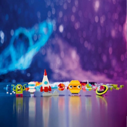 Priložena so preprosta slikovna navodila ter navdih v aplikaciji LEGO Builder. Iz paketa idej lahko ustvarite do 8 planetov in številne druge modele. Komplet podpira fino motoriko, ustvarjalnost in logično razmišljanje ter se odlično kombinira z drugimi kompleti serije LEGO Classic.