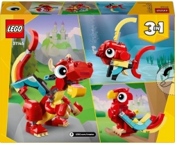 Podarite otroški domišljiji krila z vsestranskim setom LEGO Creator 3v1 Rdeči zmaj. Iz enega pakiranja lahko ustvarijo kar tri različne modele in ob vsakem preoblikovanju doživijo nove pustolovščine. Premične okončine, krila in glava omogočajo naravno poziranje in pripovedovanje zgodb.
