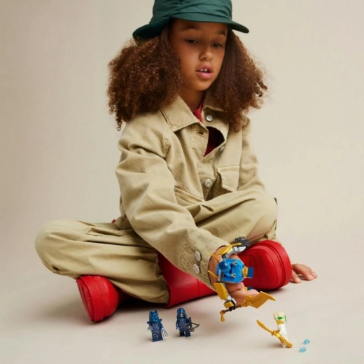 Doživite edinstveno LEGO pustolovščino z gradbenim setom Ninjago: Jayev Bojni Stroj. Figurica meha ima premične roke, noge in trup, je opremljena z velikim zlatim mečem in lahko strelja iz dveh izstreljevalnikov kock. Ta komplet vsebuje štiri minifigurice NINJAGO z raznovrstnimi dodatki in orožji, vključno z zlatim mečem za Jaya in dvema zlatima katanama za Mojstra Lloyda.