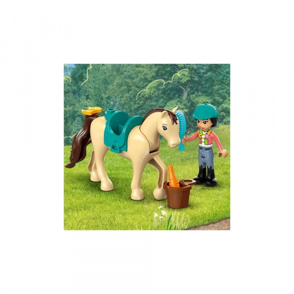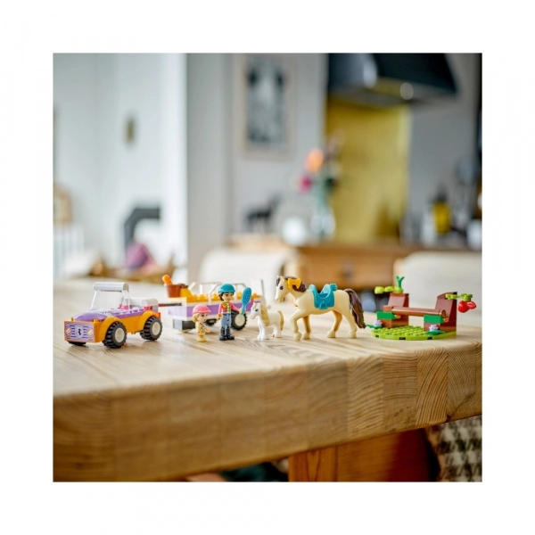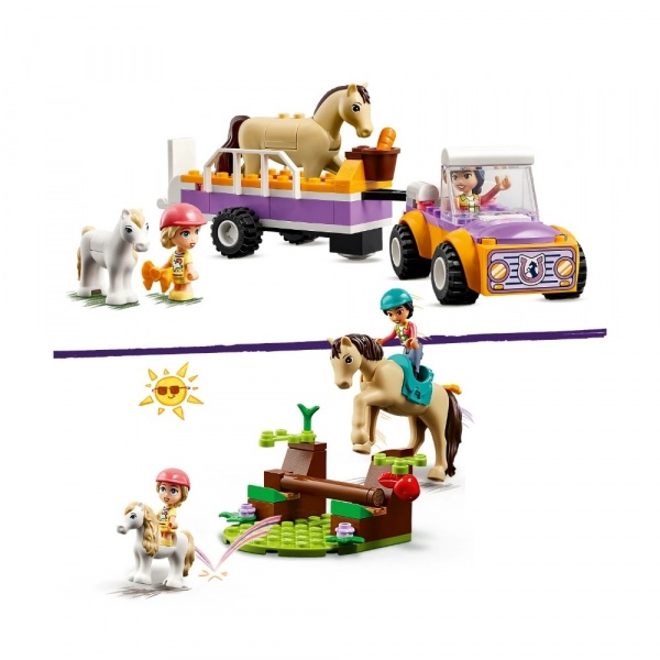 Ta barvit set prinaša otrokom vse potrebno za izlet v naravo: avto s prikolico za prevoz konja in ponija, minifigurici Liann in Zoi ter veliko dodatkov za nego živali. Zahvaljujoč začetnemu elementu je gradnja hitra in intuitivna, zato je idealna za mlajše graditelje. Aplikacija LEGO Builder poleg tega omogoča 3D ogled modelov in sledenje napredku.