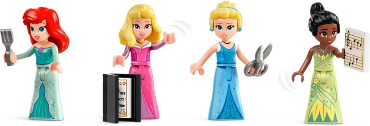 Del kompleta so minipunčke Ariel, Aurora, Pepelka in Tiana ter bogata izbira dodatkov za kreativno igro in razvoj domišljije. Zahvaljujoč aplikaciji LEGO Builder lahko otroci modele približujejo in vrtijo v 3D, shranjujejo napredek in samozavestno dokončajo gradnjo. Odlično darilo za otroke od 6 let, ki imajo radi sestavljanje in pravljice.