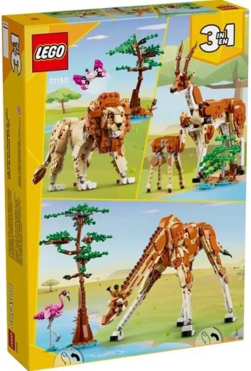 LEGO Creator 3 v 1 Divje živali s safarija otrokom prinaša barvit svet afriške narave. Iz enega nabora kock zgradijo veličastno žirafo z dolgim vratom in premičnimi sklepi, ki jo dopolnjujeta flaming in drevo. Nato lahko model preprosto predelajo v dve antilopi (mamo in mladiča) ali v impresivnega leva – vedno z dodatnimi elementi za igranje zgodb.