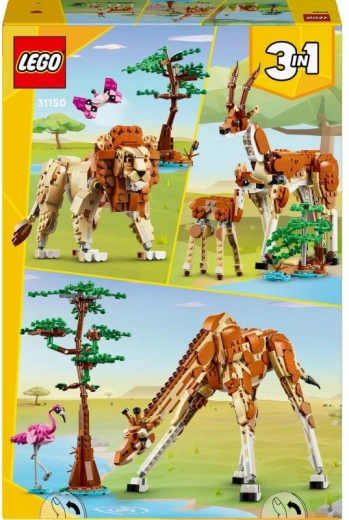 LEGO Creator 3v1 safari živali prinaša odličen odmerek zabave in ustvarjalnosti. Iz enega paketa zgradite ponosno žirafo z dolgim, nastavljivim vratom, majhno drevo in prikupnega plamenca. Ko je čas za spremembo, model predelajte v dve ljubki gazeli – mamo z mladičem – ali v plemenitega leva s spremljevalnimi elementi.