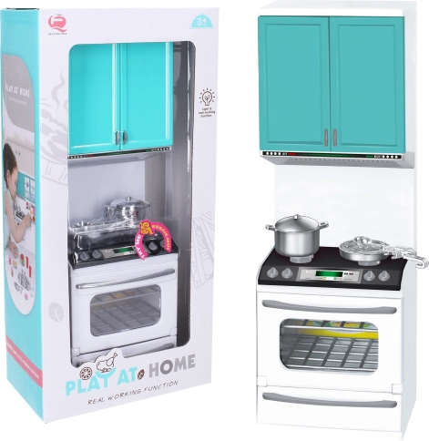 Majhna otroška kuhinjica bo razveselila vse male kuharje: kuhalnik in pečica oddajata svetlobne in zvočne učinke, ki jih upravljate s stikalom na kuhalniku. Zahvaljujoč kompaktnim meram 10 × 8 × 32 cm se prilega v vsako sobico, 2× AAA bateriji sta priloženi – samo odprite in začnite kuhati.