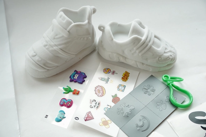 Končane superge pritrdite z obeski na nahrbtnik ali ključe. Zbirajte in kombinirajte do 24 različnih dizajnov.