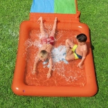 * Izpustni ventil * Brez potrebe po dodatni opremi. Priključite adapter na vrtno cev in SE ZAPELJITE! * 5,31 m dolg tobogan z dvema stezama je idealen za tekmovanja in skupinsko zabavo * Voda teče v bazen in poskrbi za velik vodni špric na koncu tobogana * Vgrajeni razpršilniki ustvarjajo kaskadni učinek in ohranjajo površino steze spolzko