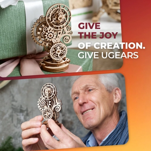 Ta čudovit model znamke UGEARS predstavlja edinstveno kombinacijo mehanskih komponent, kot so zobniki in gumijasti motorji s tradicionalnimi materiali. Ponuja zabavno sestavljanje brez potrebe po lepilu, premišljene detajle in gladko delovanje. Primeren je za razvoj motorike in domišljije pri otrocih in odraslih.