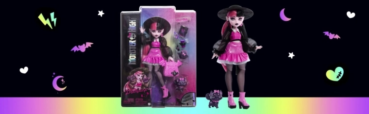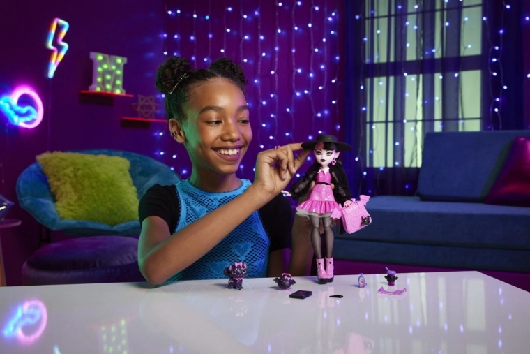 Odkrijte čar lutke MONSTER HIGH Draculaura v rožnato‑črnem gotskem slogu. Zahvaljujoč premičnim sklepom, prikupnemu ljubljenčku in stilskim dodatkom je idealna za kreativno igro otrok od 4. leta dalje.
