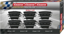 Paket vsebuje 6 kosov, kar skupaj ustvari lok 180°. Zahvaljujoč polmeru R1 lahko ustvarite ostrejše odseke, ki povečajo napetost dirk in raznolikost postavitve. Za popolno dodelavo lahko dodate notranje robnike 20590 in zunanje robnike 20567.