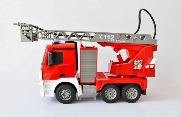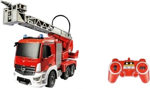 Ta podrobno izdelan RC model Mercedes-Benz Antos je izdelan po uradni licenci in otrokom prinaša avtentično igralno izkušnjo. Zahvaljujoč živim barvam, vzdržljivi konstrukciji in funkcionalnim efektom (sprednje in zadnje luči, strešni svetlobni znaki) izgleda in se obnaša kot pravo gasilsko vozilo. Vgrajen rezervoar za vodo s cevjo in črpalko omogoča škropljenje vode, medtem ko vrtljiva lestev 360° z izvlekom do približno 55 cm razširi doseg posredovanja.