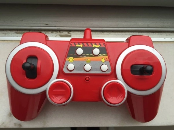 - RC gasilsko vozilo, daljinski upravljalnik, akumulator za vozilo, polnilnik, pomožna posodica za polnjenje, navodila