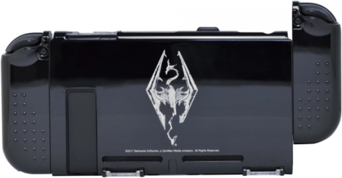 Dodajte svoji konzoli slog in zanesljivost z uradno licenciranim ovitkom, navdihnjenim z igro THE ELDER SCROLLS: SKYRIM. Tridelna zasnova ščiti konzolo in Joy-Cone, ohranja dostop do vseh kontrol in omogoča preprosto odstranjevanje Joy-Conov brez snemanja ovitka. Trpežen material z učinkom obrabljene kovinske oprave zanesljivo ščiti pred praskami in manjšimi udarci.