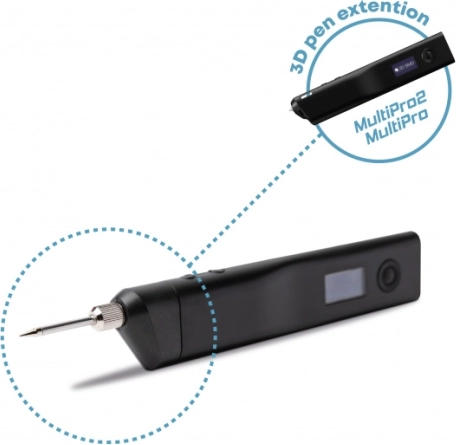 Nastavek za spajkanje za 3D pero MultiPro spremeni vaše 3D pero v univerzalno delavniško orodje. Idealen je za manjša elektronska popravila, hobi projekte in kreativno delo, kjer boste cenili natančnost in stabilno zmogljivost. Menjava poteka enostavno in hitro, zato lahko gladko prehajate med spajkanjem in ostalimi funkcijami peresa.