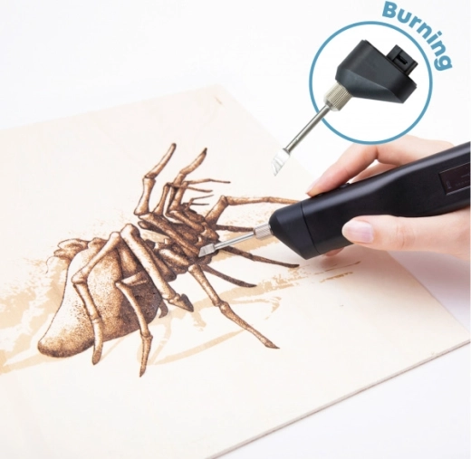 Primerno za dekoriranje lesenih predmetov, usnjenih dodatkov ali za personalizacijo daril. Stabilna zmogljivost in združljivost s sistemom Multipro vam omogočata hitro preklapljanje med 3D risanjem, rezanjem, spajkanjem in žganjem.