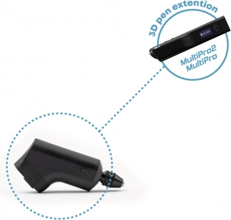 Vsestranski nastavek vrtalnik za 3D pero MultiPro. Vrtanje, rezljanje, brušenje in rezanje, do 20.000 vrt/min, svedri 0,3–3,2 mm. Enostavna zamenjava.