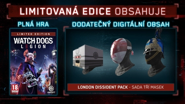 - Polna igra Watch Dogs Legion, London Dissident Pack (3 maske), prednaročniški bonus Golden King Pack (maska, videz pištole, videz avtomobila)