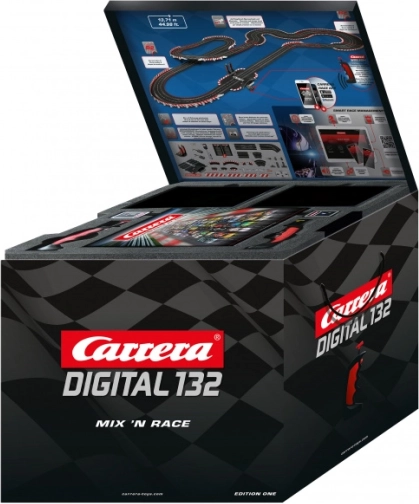 Odkrijte vrhunski digitalni dirkalni sistem z avtocesto Carrera Digital 132 Mix and Race. Zaradi kombinacije steze v merilu 1:24 in avtomobilov v merilu 1:32 dobite široko, stabilno progo ter podrobne modele z odlično dinamiko vožnje. Set je opremljen z brezžičnimi upravljalniki, Control Unit za nastavitve vozil in dirkalnih režimov ter podporo aplikacije Carrera za mobilnik, tablico ali PC.