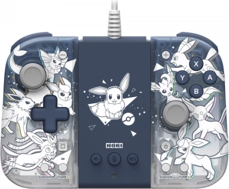 Komplet HORI Split Pad Pro Attach Set (Eevee Evolutions) prinaša popoln nadzor nad igro v vsaki situaciji. Z namestitvijo na konzolo Nintendo Switch dobite udoben prenosni način s polnovrednimi kontrolami, po priklopu na nastavek pa lahko napravo uporabljate kot žični krmilnik za igranje na televiziji. Polprosojen pokrov z grafiko Eeveeja in njegovih evolucij bo razveselil vsakega oboževalca.