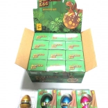 To čarobno jajce skriva presenečenje – malega dinozavra, ki se pred otroškimi očmi postopoma izvali in zraste. Dovolj je, da jajce položite v skodelo s toplo vodo in opazujete, kako lupina poka ter se dinozaver prebija na plan.
