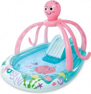 Robustna zasnova je ustvarjena za otroško razigranost z največjo nosilnostjo 54 kg in prostornino do 229 l. Pisani morski motivi, hobotnica in dodatki spodbujajo ustvarjalno igro. V paketu najdete tudi dva napihljiva obroča za preprosto metanje in lovljenje ter praktičen popravni obliž.