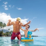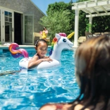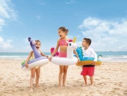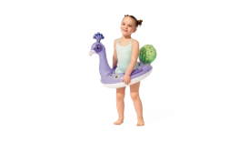 Izbirajte med veselo lamo, pravljičnim samorogom ali igrivim dinozavrom. Barviti motivi povečajo vidnost v vodi in otroci jih obožujejo.