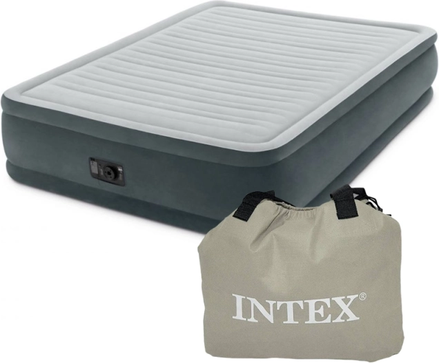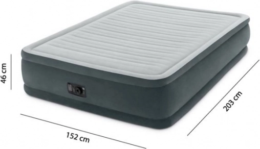 Napihljiva vzmetnica Intex (203x152x46 cm) je idealna rešitev za udobno spanje dveh oseb doma ali na poti. Zahvaljujoč vgrajeni električni črpalki nudi vzmetnica prednost hitrega napihovanja v le 3 minutah in enostavnega izpihovanja v 1 minuti.