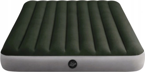 Udobna napihljiva vzmetnica INTEX za dve osebi ponuja mere 203 × 152 × 25 cm in hitro pripravo zahvaljujoč priloženi električni črpalki. Površina iz prijetnega velurja je vodoodporna in mehka na dotik, konstrukcija s tehnologijo Dura-Beam Fiber zagotavlja stabilnost in oporo hrbtenici. Idealna za prenočevanje doma in kampiranje, s hitrim napihovanjem in izpihovanjem preko Boston ventila.