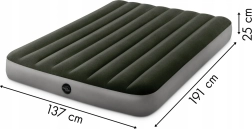Žametna blazina INTEX z merami 191 x 137 x 25 cm je idealna za počitek 2 oseb. Izdelana je iz trpežnega PVC, zgornja stran pa je prevlečena z vodoodporno žametno tkanino. Celota v prijetnem zelenem odtenku se bo podala v vsak interier.