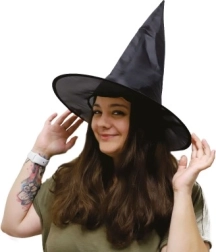 Izrazita konica in širok krajec vaši preobleki dodata avtentičen značaj. Črn tekstilen klobuk se odlično poda tako k kostumu čarovnice kot čarovnika.