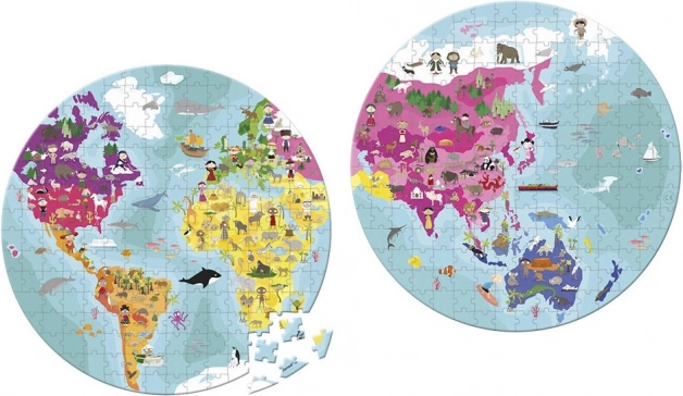 Odkrijte svet z otroki z okroglo sestavljanko JANOD z motivom zemeljske oble. Ta kakovostna sestavljanka s premerom 50 cm ponuja 208 koščkov, ki prikazujejo vzhodno in zahodno poloblo z ilustracijami živali. Odlična za učenje skozi igro, razvoj potrpežljivosti, fine motorike in prostorske predstave, vse to v praktičnem kovčku.