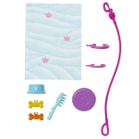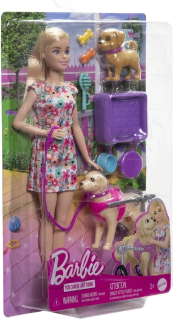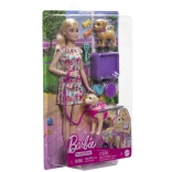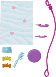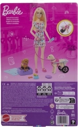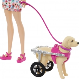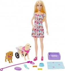 Uživajte v zabavi z Barbie in njenimi živalskimi prijatelji! Ta punčka s kužkom in psom na invalidskem vozičku navdihuje k kreativni igri ter skrbi za vsa živa bitja. Voziček je mogoče zlahka sneti in znova namestiti, da pomaga kužku priti tja, kamor potrebuje. Set vključuje veliko dodatkov, vključno s posodo za hrano, ovratnico, ležiščem in povodcem, ki se popolno prilega Barbienim rokam. Barve in okraski se lahko razlikujejo.