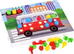 Vstavljanje čepkov v natančne luknje krepi prstke, koordinacijo oko–roka in podpira pravilen prijem.