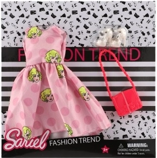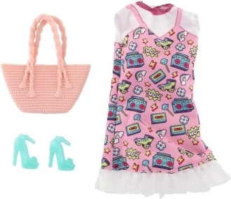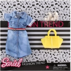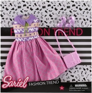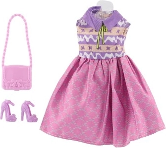 Paket vsebuje vse, kar potrebujete – obleko, čevlje in torbico za popoln videz vaše punčke.