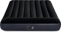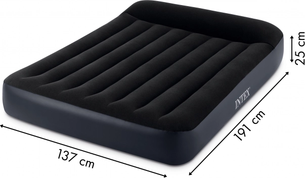Napihljiva postelja INTEX je idealna za dve osebi – odlično se obnese za goste, na vikendu ali pri kampiranju. Zgornja plast z udobno velur prevleko je vodoodporna in prijetna za ležanje, medtem ko robusten PVC zagotavlja vzdržljivost. Vgrajena električna črpalka (220–240 V) pripravi ležišče za uporabo v približno 250 sekundah, velik ventil omogoča hitro izpihovanje in enostavno zlaganje.