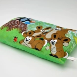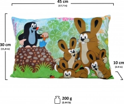 Mehki vzglavnik z motivom priljubljenega Krteka in zajcev, idealen za posteljico, na potovanja ali kot očarljiva dekoracija za otroško sobo.