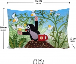 Odkrijte mehak vzglavnik z motivom priljubljenega Krteka, idealen dodatek za otroško posteljico, na potovanju ali kot dekoracija v otroški sobi.