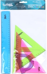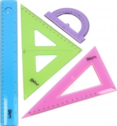Vsi deli kompleta so zasnovani za natančno risanje in merjenje, primerni za matematiko, geometrijo in tehnično risanje. Barvna izvedba omogoča hitro orientacijo in motivira otroke za delo s pripomočki.